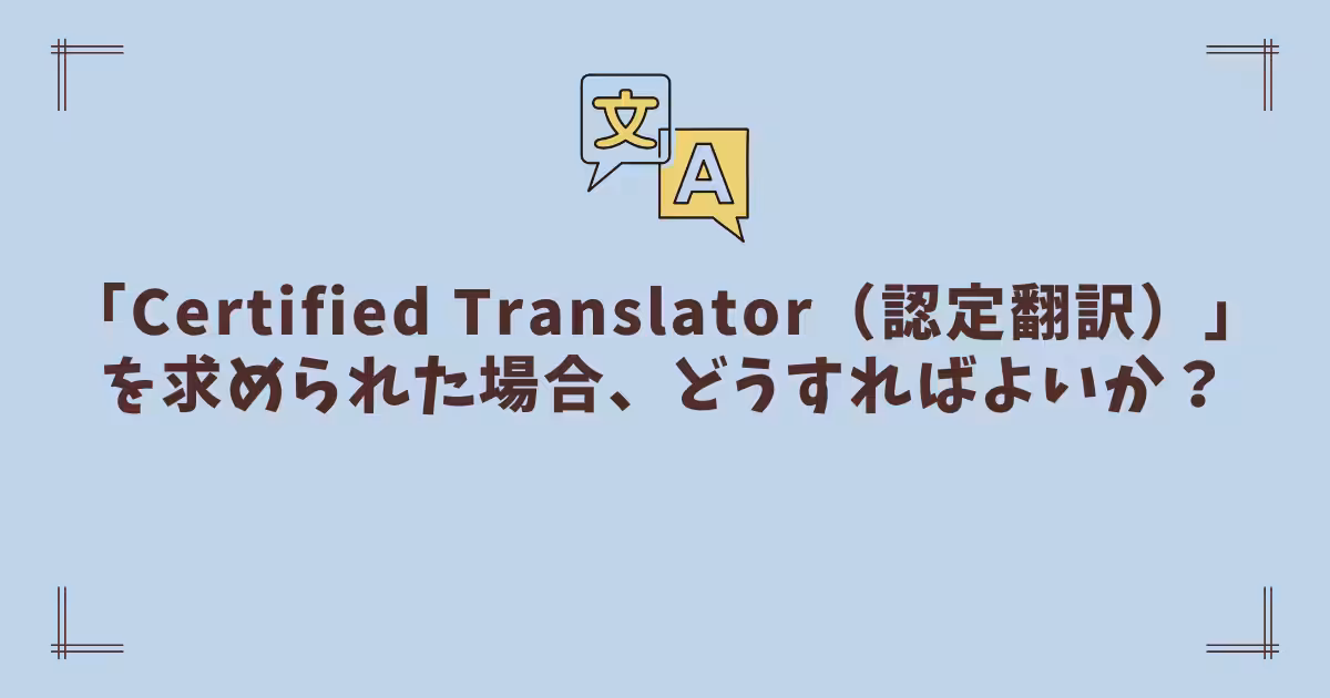 「Certified Translator(認定翻訳)」を求められた場合、どうすればよいか?